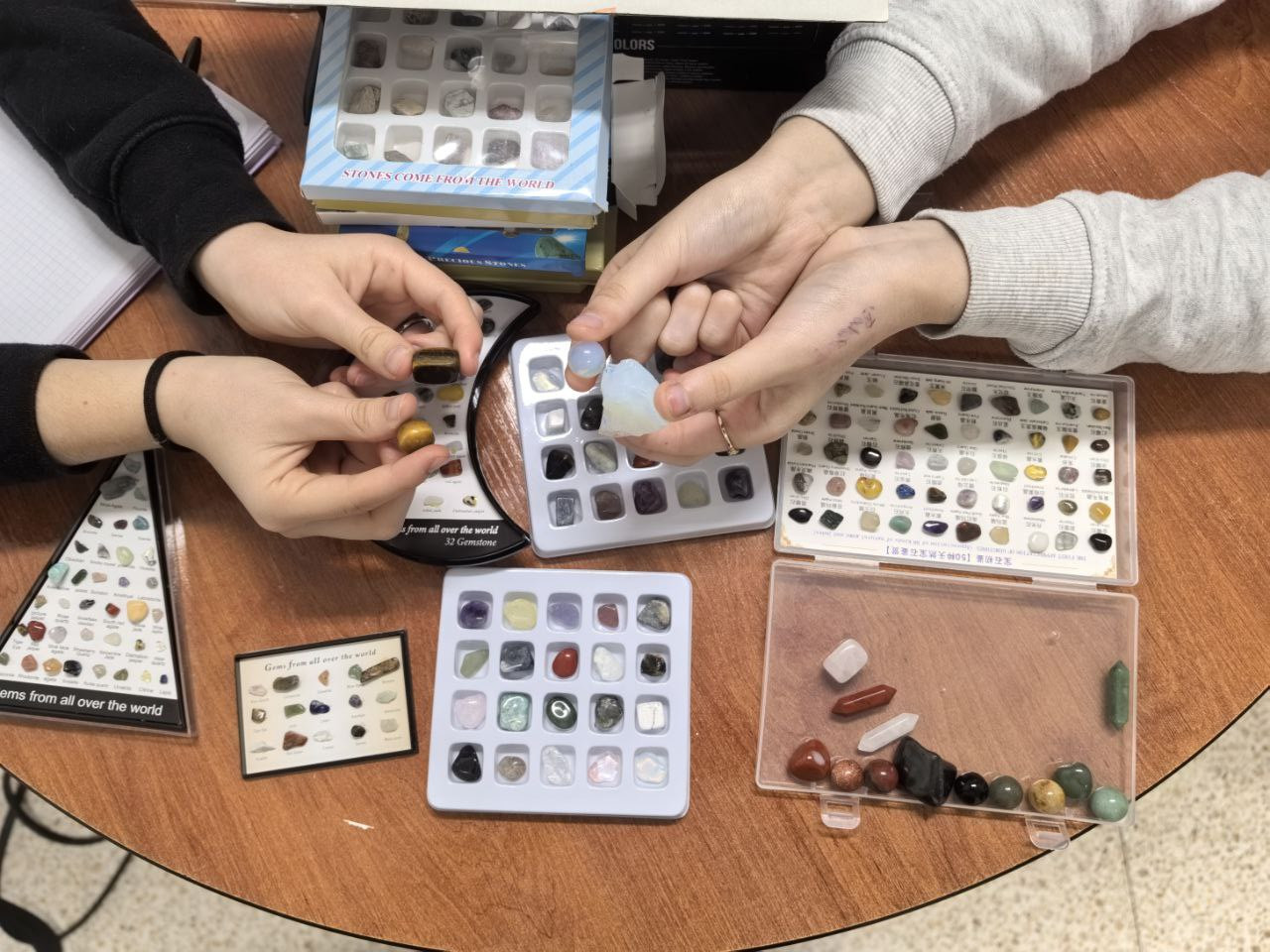 Hem treballat des d'un enfocament sensorial el coneixement de minerals i pedres semiprecioses. És una activitat que entra directament pels ulls i el tacte, i que reforça de manera molt positiva l'estímul per conèixer el món natural.