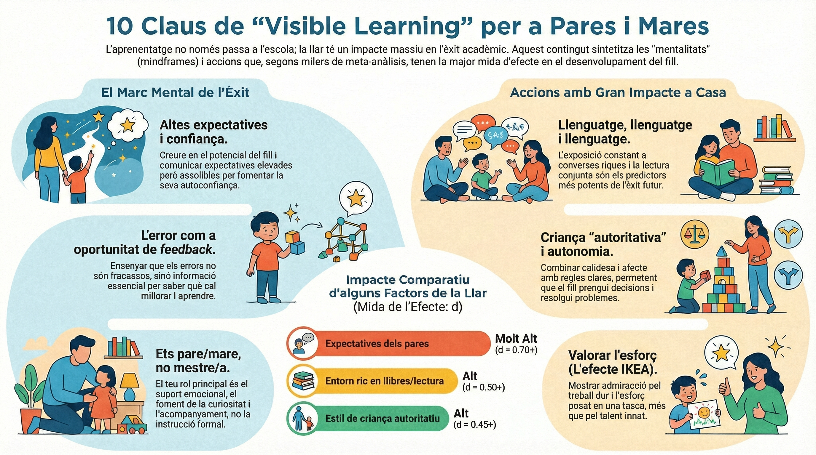 Basada en la recerca de Visible Learning de John Hattie. Claus fonamentals perquè les famílies potenciïn l'aprenentatge des de casa: