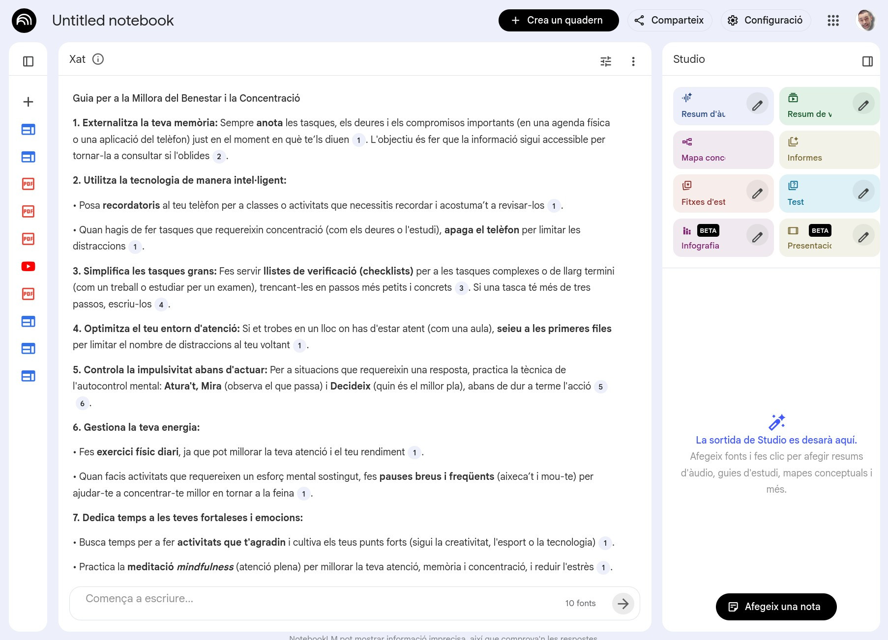 Una activitat on aprenem a utilitzar la Intel·ligència Artificial (com NotebookLM) per investigar sobre els nostres interessos, organitzar informació i crear recursos a mida, com la "Guia de Benestar".