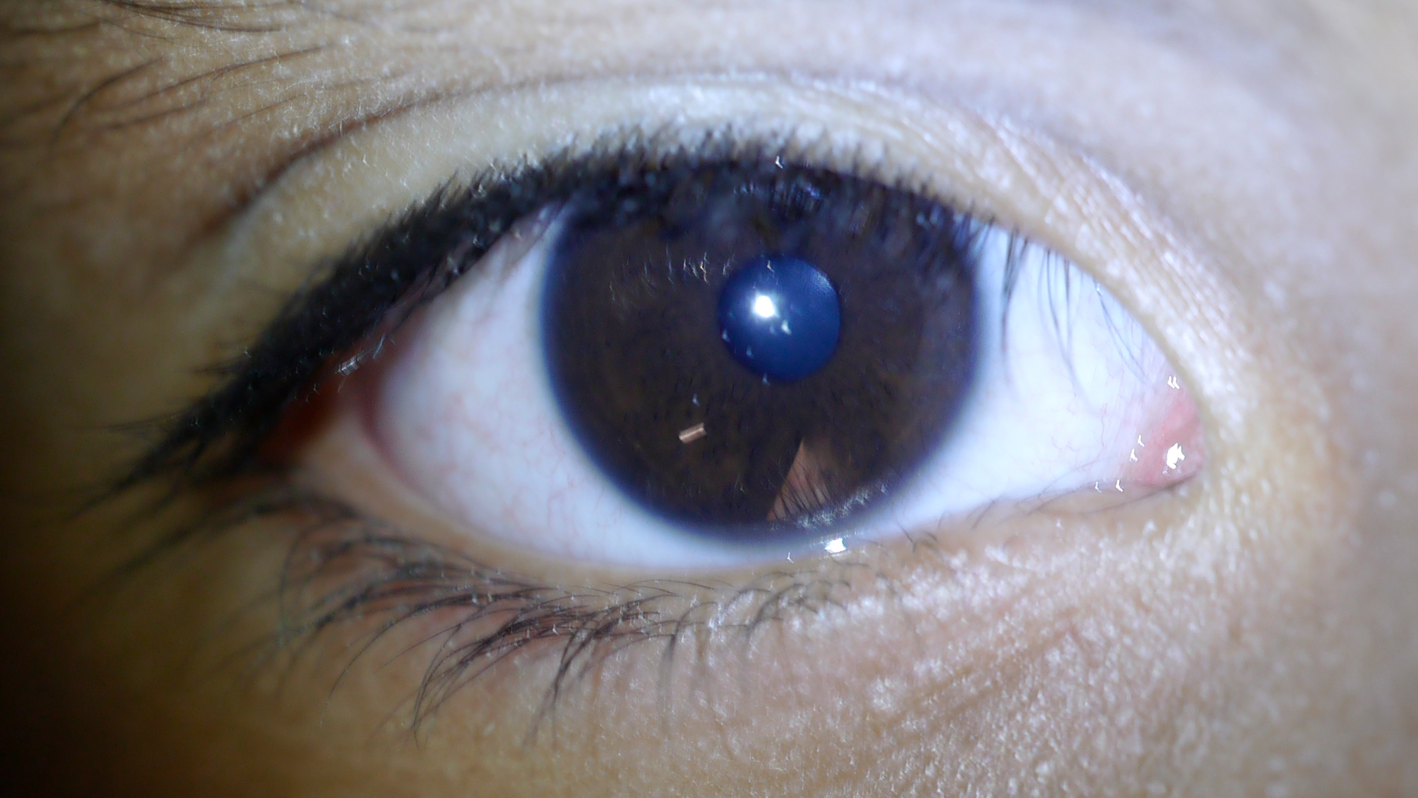 Esta es la mejor foto que tuve el tiempo de hacer de su ojo derecho. Se necesita más tiempo para hacer una foto de un ojo oscuro que para un ojo claro. Hay que ajustar bien los parámetros para que se enfoque la cámara y se aprecien detalles y una chica de 13 años puede no tener ese día la paciencia o las ganas necesarias. Kika si quieres otro día te rehago la foto esta vez con más tiempo.