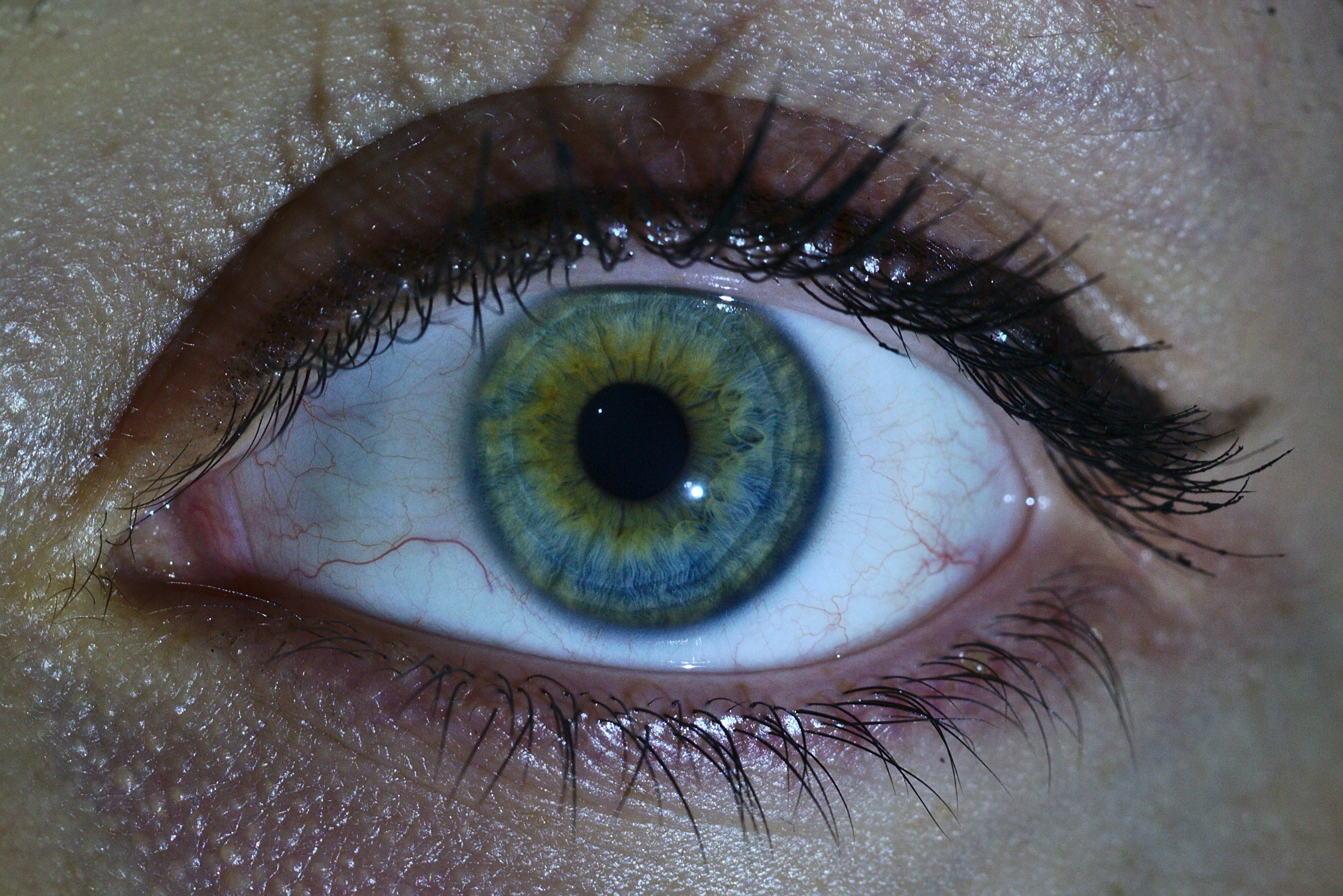 En los ojos azules no es muy común ver unos pliegues anulares como estos, los anillos no se ven amarillos como en los ojos castaños y en zonas hasta dan oscuridad como efecto óptico. Además las fibrillas parecen cambiar de dirección en los alrededores de los anillos.