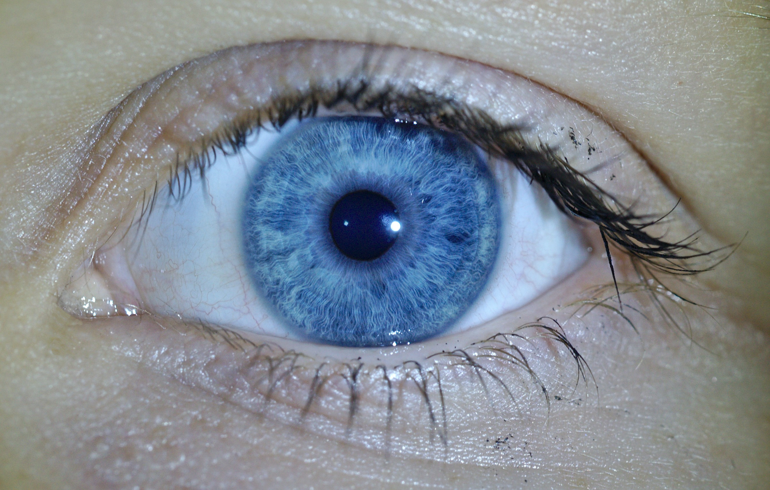 Esta foto destaca de las otras por dejar ver mejor el esfinter de la pupila y los añillos además del gran contraste logrado entre las fibrillas clara y el azul del iris. Pero no acaba ahí, normalmente las ramificaciones de los capilares van hacia la pupila pero en este caso hay un capilar que va de arriba a abajo a la derecha del iris.
