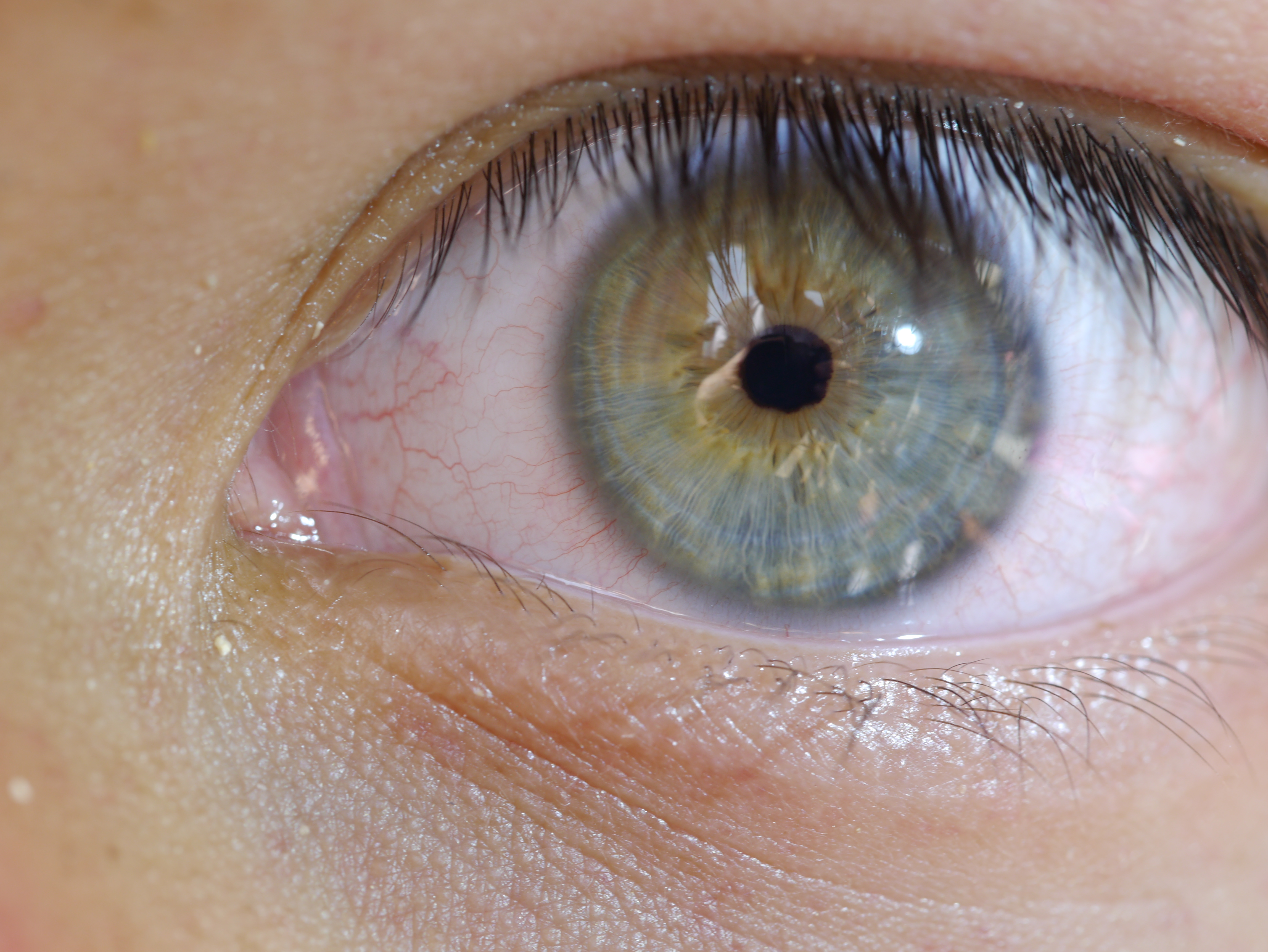 Siento que la foto haya salido cortada por la derecha pero creo que es la mejor que tenía. Se aprecian bien las fibrillas azules y como tiene como un cuarto del ojo de un color más castaño. Los capilares rojos son muy visibles por lo que diría que también estaba tenía los ojos irritados.